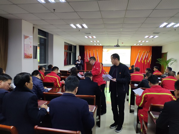 該次學(xué)習(xí)活動(dòng)由萬(wàn)達(dá)重工黨總支副書(shū)記于江山同志主持,共有五項(xiàng)議程。會(huì)議開(kāi)始,首先全體參會(huì)人員共唱國(guó)歌;接著黨總支書(shū)記何清同志帶領(lǐng)大家重溫入黨誓詞;然后萬(wàn)達(dá)重工子公司黨支部書(shū)記李懷剛同志對(duì)其黨支部的2名預(yù)備黨員轉(zhuǎn)正式黨員情況進(jìn)行了匯報(bào);接下來(lái)召開(kāi)了萬(wàn)達(dá)重工黨支部黨員大會(huì),大會(huì)討論并投票選舉通過(guò)2名發(fā)展對(duì)象轉(zhuǎn)預(yù)備黨員決議;隨后分別由靳奎同志、劉超越同志、白笑棠同志、張夢(mèng)珠同志帶領(lǐng)大家集中學(xué)習(xí)《中共鄭州市委關(guān)于以習(xí)近平新時(shí)代中國(guó)特色社會(huì)主義思想為指導(dǎo)全面推進(jìn)黨的建設(shè)高質(zhì)量發(fā)展的實(shí)施意見(jiàn)》。