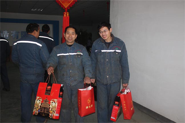 為感謝全體員工一年來的辛勤工作,祝福員工度過一個(gè)歡樂喜慶的新年,公司本著,一切以為員工謀福利的原則,為每位員工購(gòu)置了禮品(若羌大棗、稻花香金玉滿堂)。讓員工把公司溫暖帶回家。