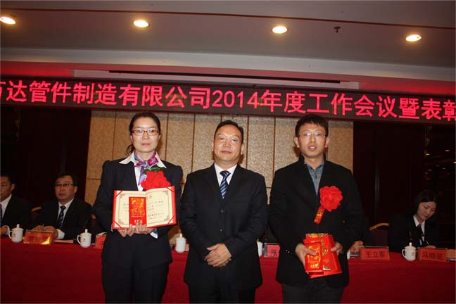 鄭州萬達管件制造有限公司2014年年會于2015年1月20日隆重召開。會議首先表彰了公司2014年度先進工作者、先進部門及班組、優(yōu)秀干部、年度進步之星、銷售冠軍、優(yōu)秀黨員等十余個獎項,并對獲獎者頒發(fā)了獎金和證書。公司董事長、黨委書記何清同志在會議上做了題為《適應新常態(tài) 開創(chuàng)新局面 實現(xiàn)公司持續(xù)健康穩(wěn)定發(fā)展 》的報告,總結了2014年公司的發(fā)展歷程,取得的成績和不足,展望和部署2015年公司發(fā)展的目標和重點工作,為公司全力建設五位一體的萬達事業(yè)指明了努力方向。公司全體人員中午舉行了盛大的團拜招待會,歡聚一堂,其樂融融。