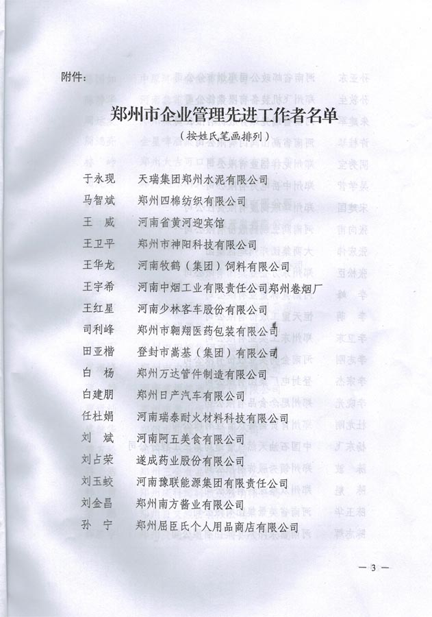 熱烈祝賀我公司白楊同志獲得鄭州市企業(yè)管理先進(jìn)工作者稱號